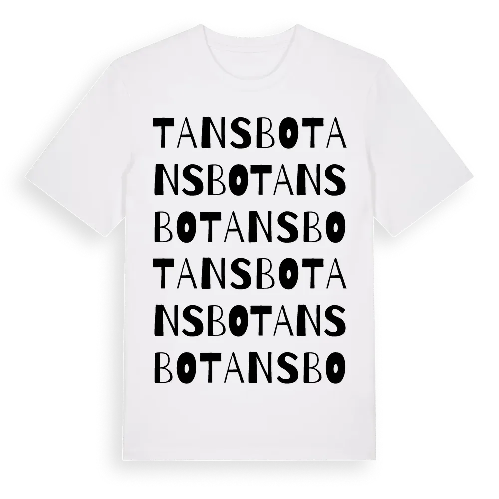 En ordlek byggd på Tansbos namn. Subtilt och klurig – ett motiv som bara de som verkligen känner platsen fullt ut förstår. Premium bomull, unisex – från byn Tansbo i Dalarnas län.
