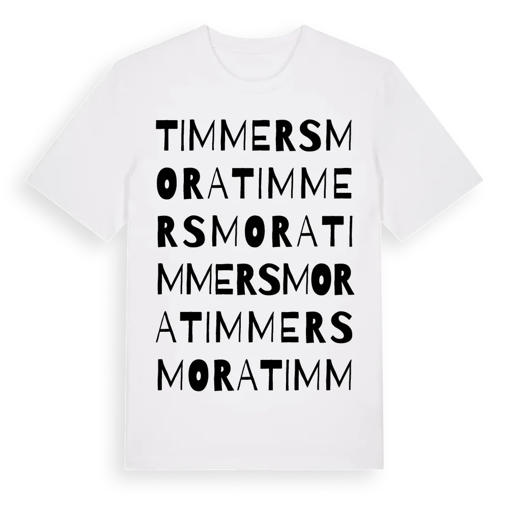 Timmersmora ordlek t-shirt är inspirerad av byn Timmersmora i Dalarnas län, Sverige. Tröjan är designad för dig som har en speciell koppling till platsen – oavsett om du bor här, har rötterna här eller bara älskar Timmersmora.