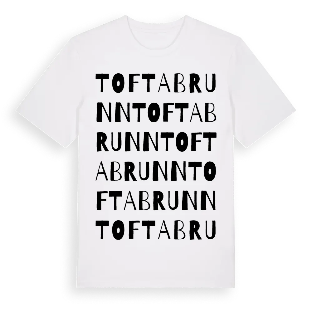 Tofta Brunn ordlek t-shirt är inspirerad av Tofta Brunn i Dalarnas län, Sverige. Tröjan är designad för dig som har en speciell koppling till platsen – oavsett om du bor här, har rötterna här eller bara älskar Tofta Brunn.