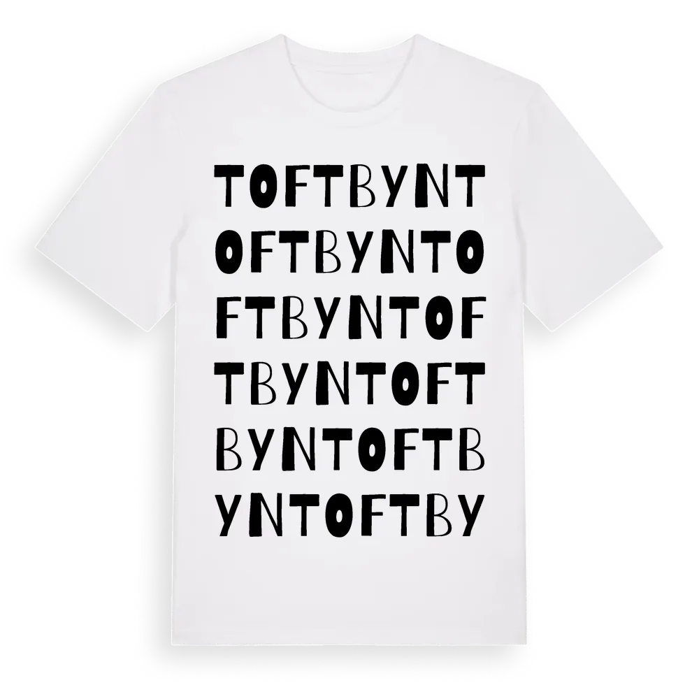 Toftbyn ordlek t-shirt är inspirerad av byn Toftbyn i Dalarnas län, Sverige. Tröjan är designad för dig som har en speciell koppling till platsen – oavsett om du bor här, har rötterna här eller bara älskar Toftbyn.