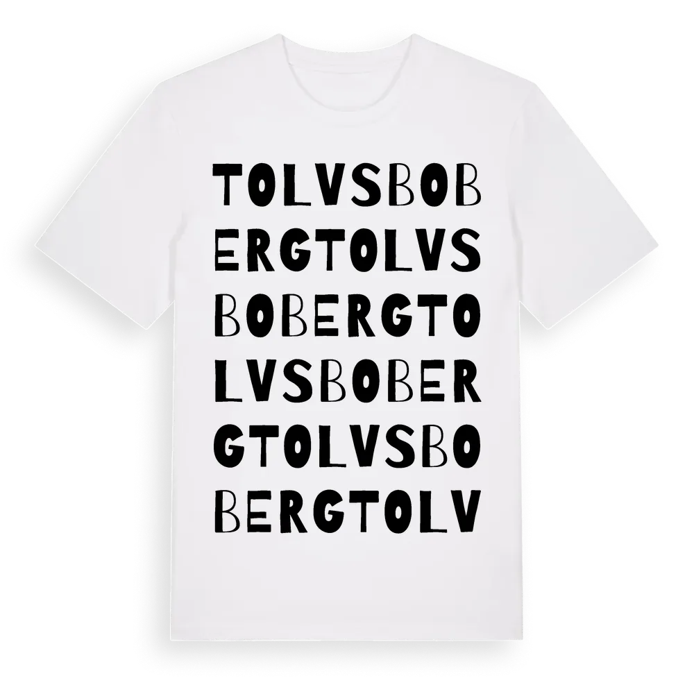 Tolvsboberg ordlek t-shirt är inspirerad av byn Tolvsboberg i Dalarnas län, Sverige. Tröjan är designad för dig som har en speciell koppling till platsen – oavsett om du bor här, har rötterna här eller bara älskar Tolvsboberg.