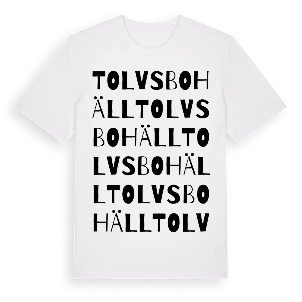 Tolvsbohäll ordlek t-shirt är inspirerad av Tolvsbohäll i Dalarnas län, Sverige. Tröjan är designad för dig som har en speciell koppling till platsen – oavsett om du bor här, har rötterna här eller bara älskar Tolvsbohäll.
