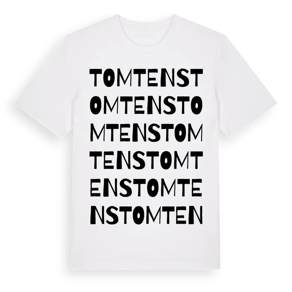 Tomtens ordlek t-shirt är inspirerad av Tomtens i Dalarnas län, Sverige. Tröjan är designad för dig som har en speciell koppling till platsen – oavsett om du bor här, har rötterna här eller bara älskar Tomtens.