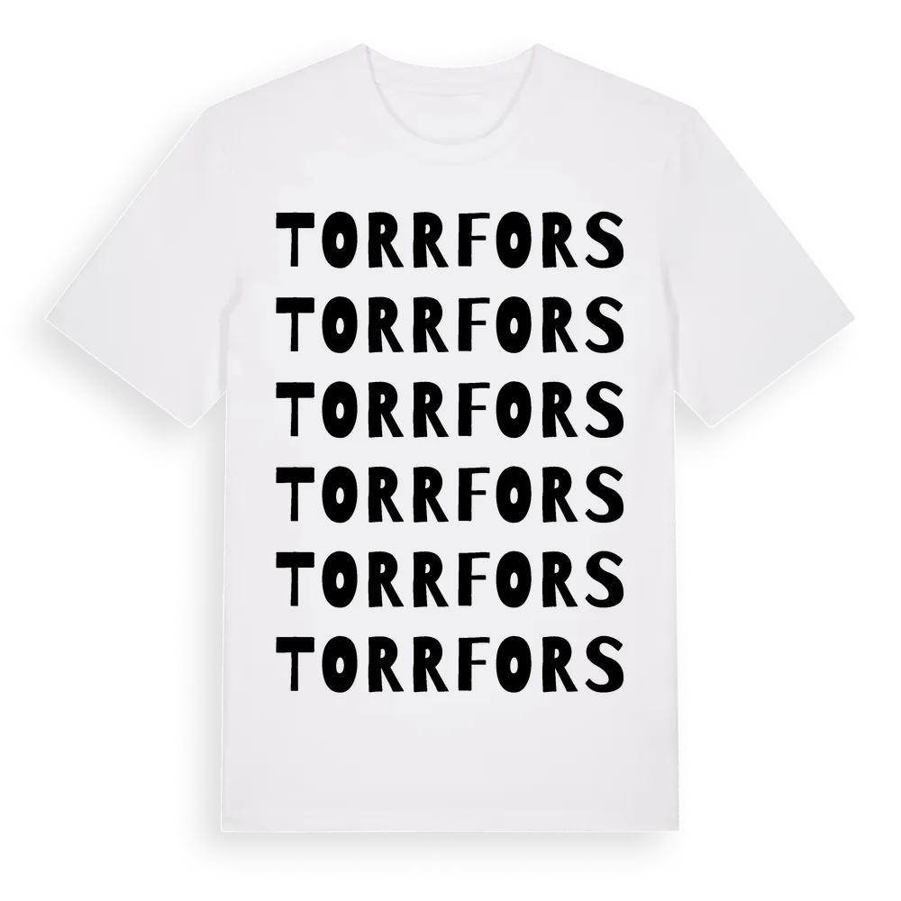 En ordlek byggd på Torrforss namn. Subtilt och klurig – ett motiv som bara de som verkligen känner platsen fullt ut förstår. Premium bomull, unisex – från Torrfors i Dalarnas län.