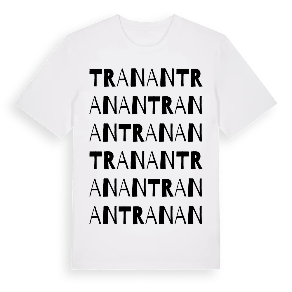 En ordlek byggd på Tranans namn. Subtilt och klurig – ett motiv som bara de som verkligen känner platsen fullt ut förstår. Premium bomull, unisex – från Tranan i Dalarnas län.