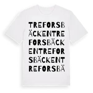 Treforsbäcken är en by i Dalarnas län, Sverige. Våra t-shirts med motiv från Treforsbäcken är designade för dig som har en speciell koppling till platsen – oavsett om du bor här, har rötterna här eller bara älskar Treforsbäcken.