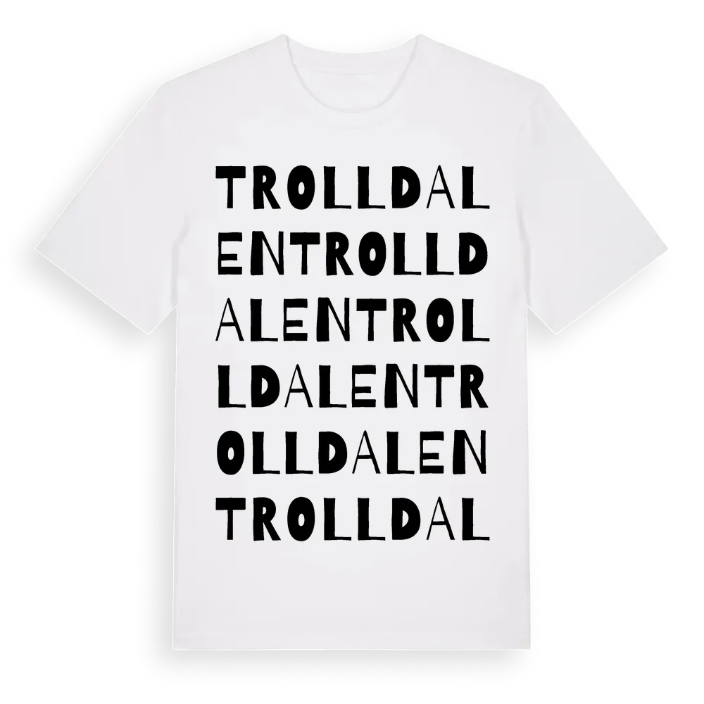 Trolldalen ordlek t-shirt är inspirerad av Trolldalen i Dalarnas län, Sverige. Tröjan är designad för dig som har en speciell koppling till platsen – oavsett om du bor här, har rötterna här eller bara älskar Trolldalen.
