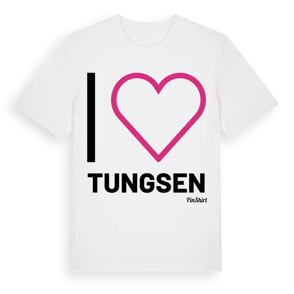 Det klassiska "I ❤ Tungsen"-motivet i stort format som täcker hela bröstet. För dig som vill visa kärleken till Tungsen på riktigt. Premium bomull, unisex – från Tungsen i Dalarnas län.