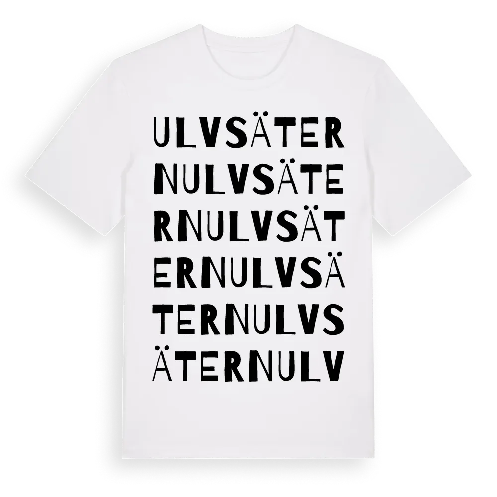 Ulvsätern ordlek t-shirt är inspirerad av Ulvsätern i Dalarnas län, Sverige. Tröjan är designad för dig som har en speciell koppling till platsen – oavsett om du bor här, har rötterna här eller bara älskar Ulvsätern.