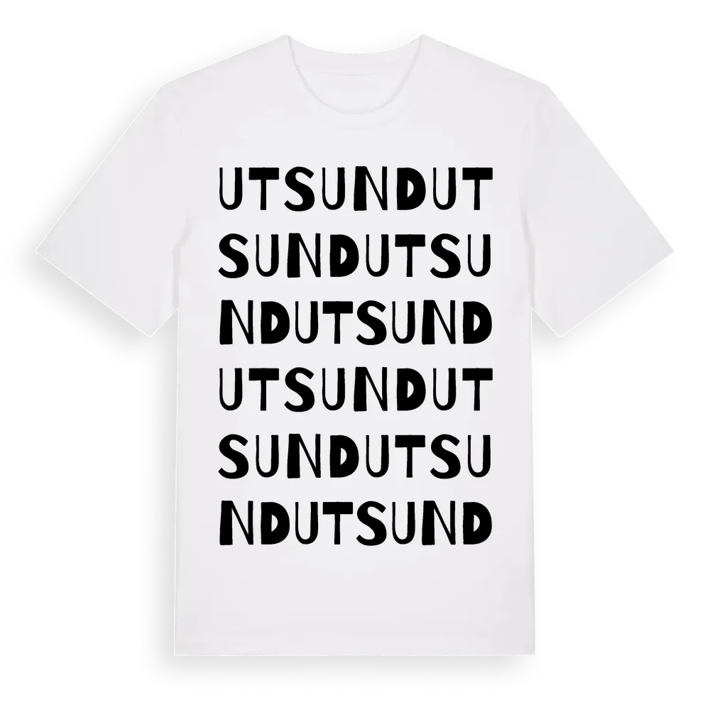 Utsund ordlek t-shirt är inspirerad av byn Utsund i Dalarnas län, Sverige. Tröjan är designad för dig som har en speciell koppling till platsen – oavsett om du bor här, har rötterna här eller bara älskar Utsund.