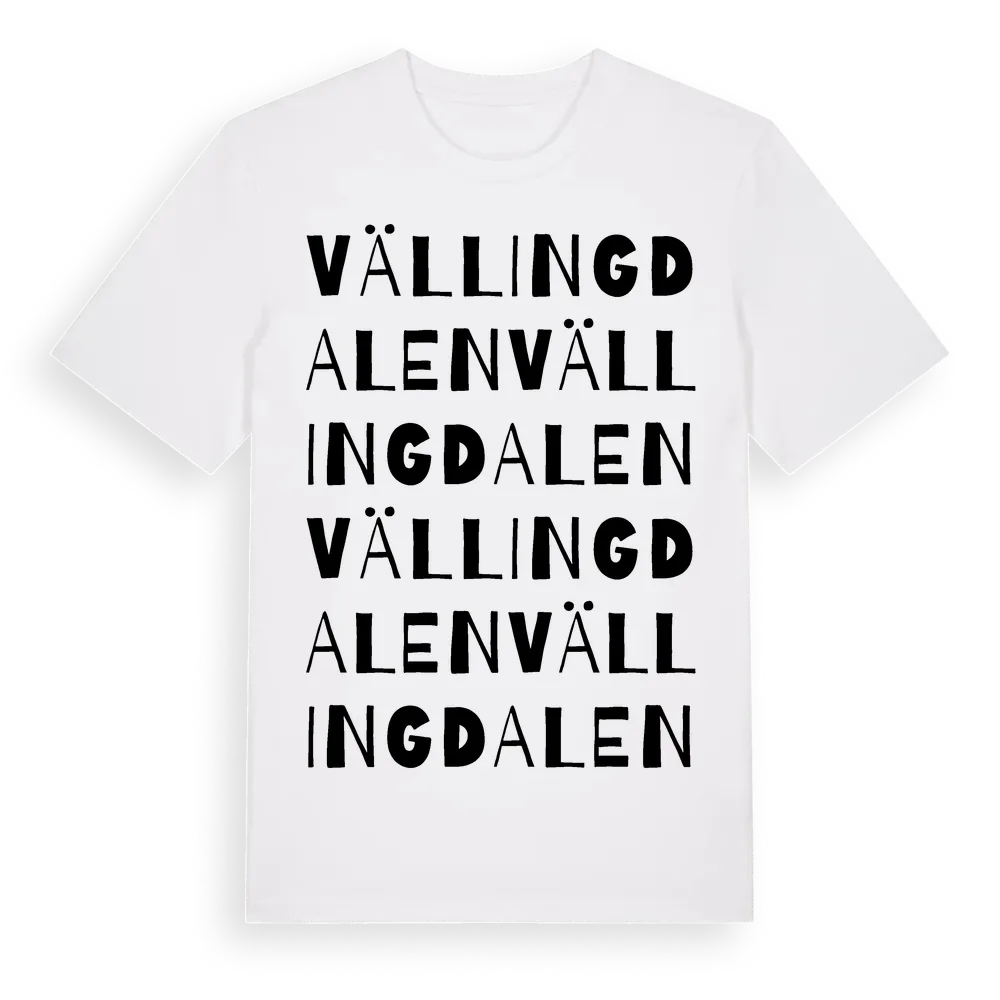 Vällingdalen ordlek t-shirt är inspirerad av Vällingdalen i Dalarnas län, Sverige. Tröjan är designad för dig som har en speciell koppling till platsen – oavsett om du bor här, har rötterna här eller bara älskar Vällingdalen.