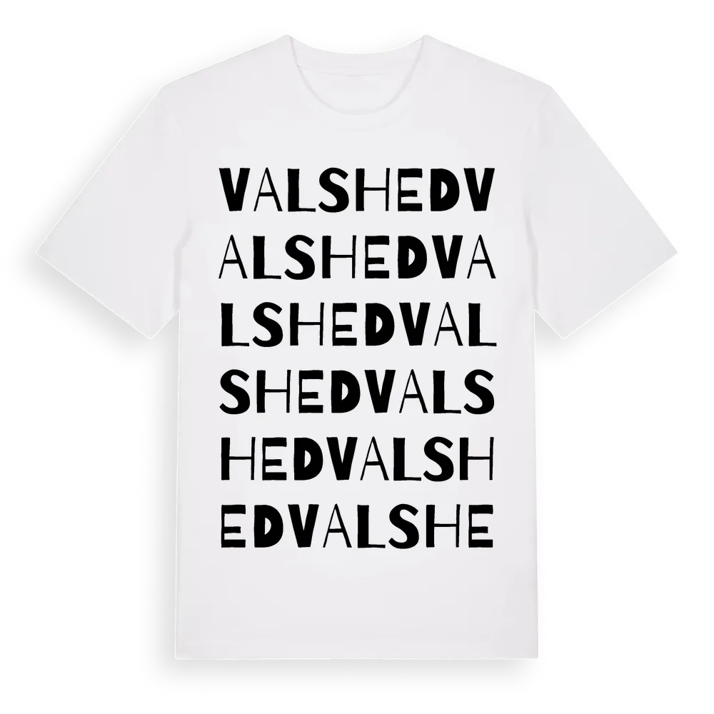 Valshed ordlek t-shirt är inspirerad av byn Valshed i Dalarnas län, Sverige. Tröjan är designad för dig som har en speciell koppling till platsen – oavsett om du bor här, har rötterna här eller bara älskar Valshed.
