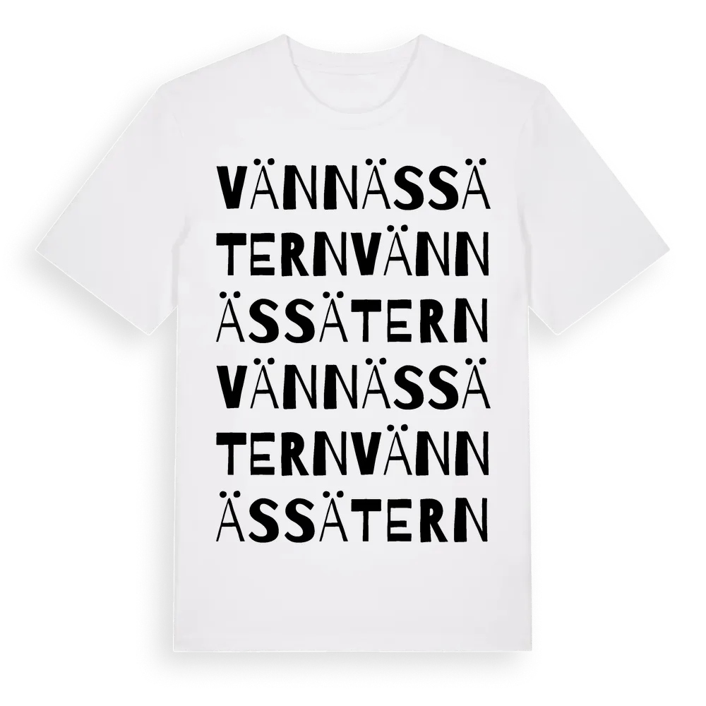 Vännässätern ordlek t-shirt är inspirerad av Vännässätern i Dalarnas län, Sverige. Tröjan är designad för dig som har en speciell koppling till platsen – oavsett om du bor här, har rötterna här eller bara älskar Vännässätern.