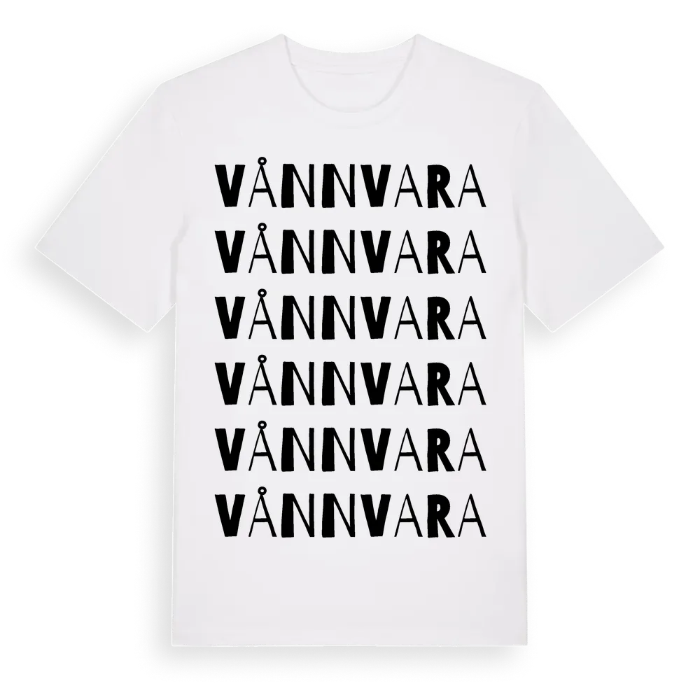 Vånnvara ordlek t-shirt är inspirerad av Vånnvara i Dalarnas län, Sverige. Tröjan är designad för dig som har en speciell koppling till platsen – oavsett om du bor här, har rötterna här eller bara älskar Vånnvara.