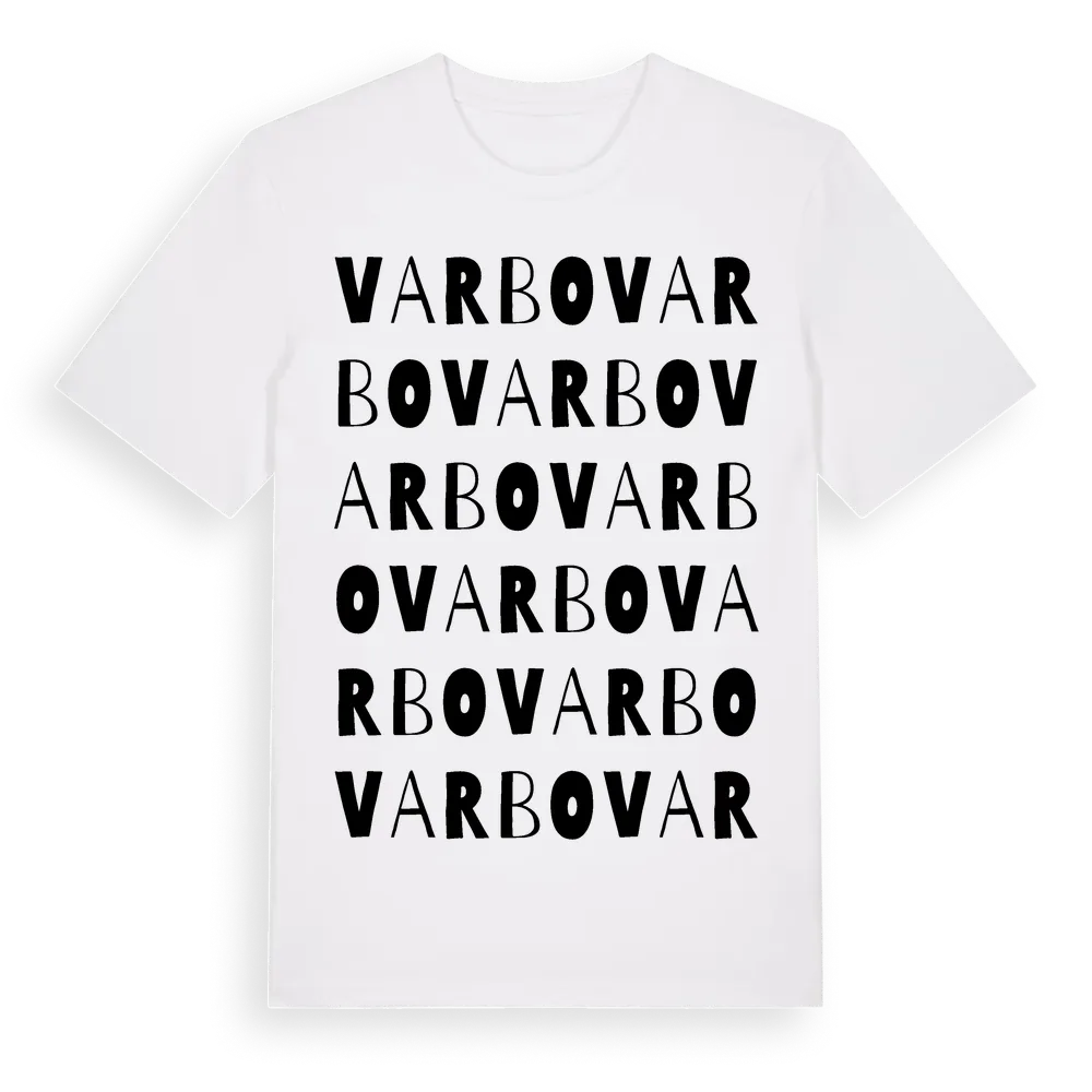 Varbo ordlek t-shirt är inspirerad av Varbo i Dalarnas län, Sverige. Tröjan är designad för dig som har en speciell koppling till platsen – oavsett om du bor här, har rötterna här eller bara älskar Varbo.