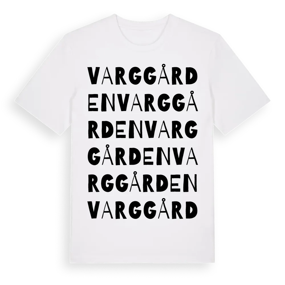 Varggården ordlek t-shirt är inspirerad av stadsdelen Varggården i Dalarnas län, Sverige. Tröjan är designad för dig som har en speciell koppling till platsen – oavsett om du bor här, har rötterna här eller bara älskar Varggården.