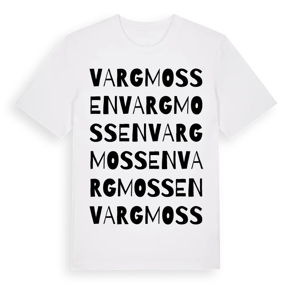 Vargmossen ordlek t-shirt är inspirerad av Vargmossen i Dalarnas län, Sverige. Tröjan är designad för dig som har en speciell koppling till platsen – oavsett om du bor här, har rötterna här eller bara älskar Vargmossen.