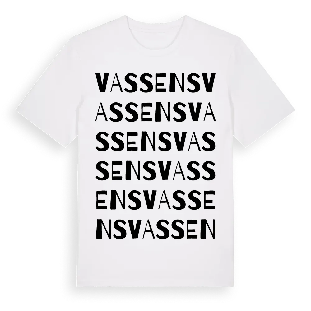Vassens ordlek t-shirt är inspirerad av Vassens i Dalarnas län, Sverige. Tröjan är designad för dig som har en speciell koppling till platsen – oavsett om du bor här, har rötterna här eller bara älskar Vassens.