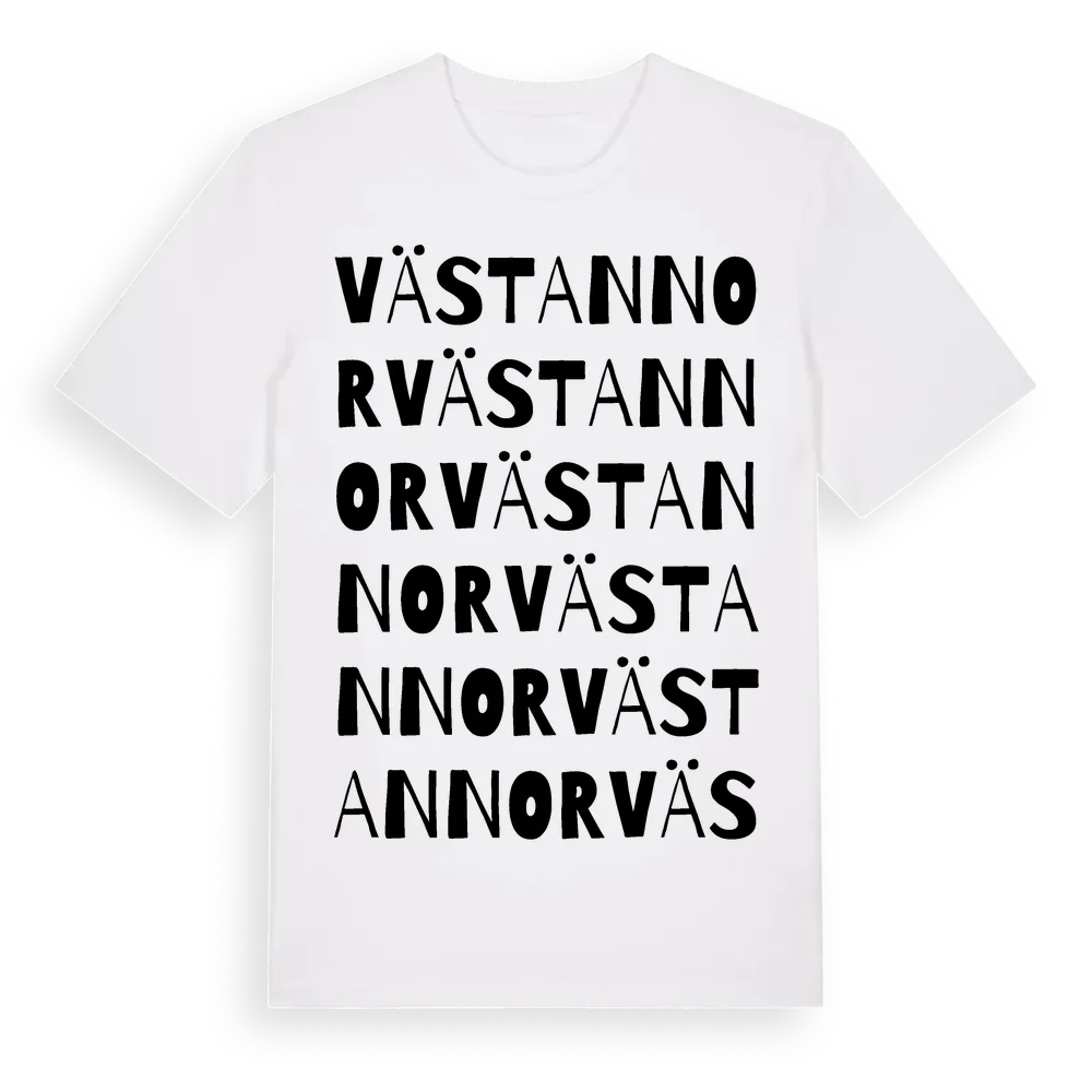 Västannor ordlek t-shirt är inspirerad av byn Västannor i Dalarnas län, Sverige. Tröjan är designad för dig som har en speciell koppling till platsen – oavsett om du bor här, har rötterna här eller bara älskar Västannor.