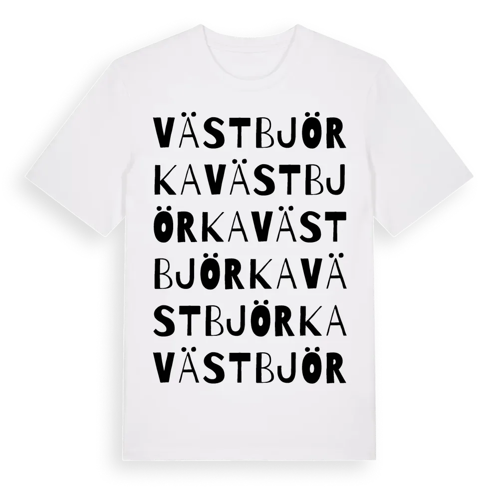 Västbjörka ordlek t-shirt är inspirerad av byn Västbjörka i Dalarnas län, Sverige. Tröjan är designad för dig som har en speciell koppling till platsen – oavsett om du bor här, har rötterna här eller bara älskar Västbjörka.