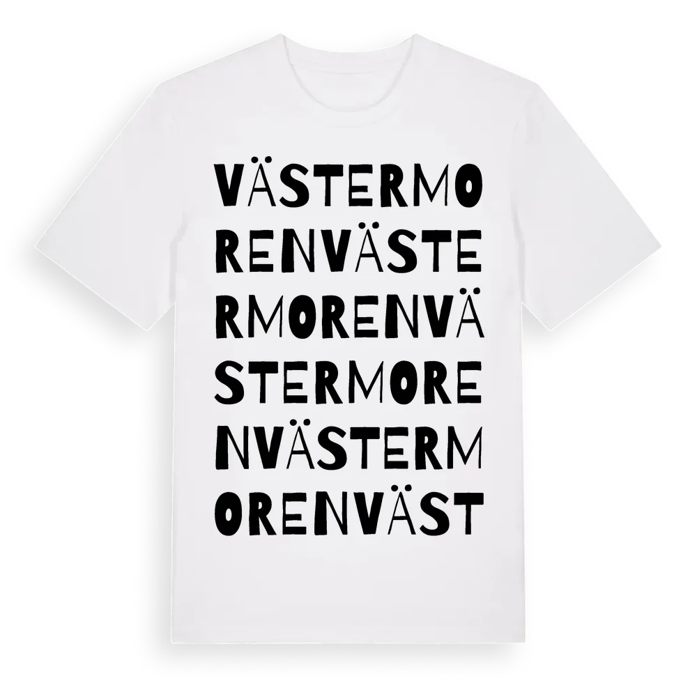 Västermoren ordlek t-shirt är inspirerad av byn Västermoren i Dalarnas län, Sverige. Tröjan är designad för dig som har en speciell koppling till platsen – oavsett om du bor här, har rötterna här eller bara älskar Västermoren.