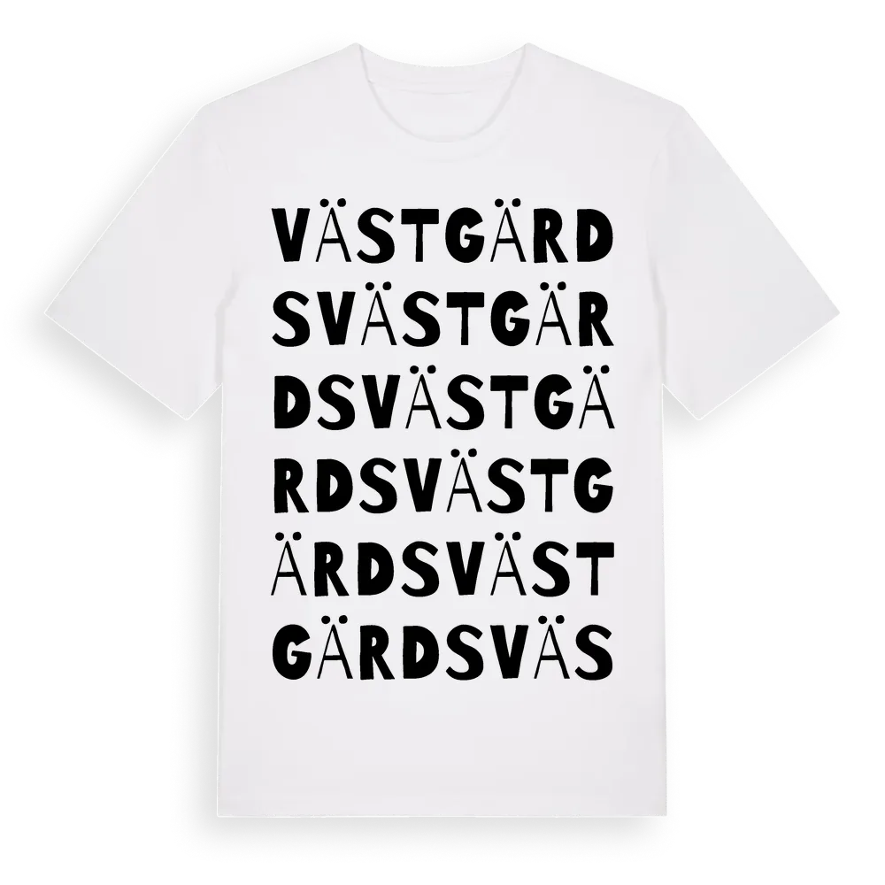 Västgärds ordlek t-shirt är inspirerad av Västgärds i Dalarnas län, Sverige. Tröjan är designad för dig som har en speciell koppling till platsen – oavsett om du bor här, har rötterna här eller bara älskar Västgärds.