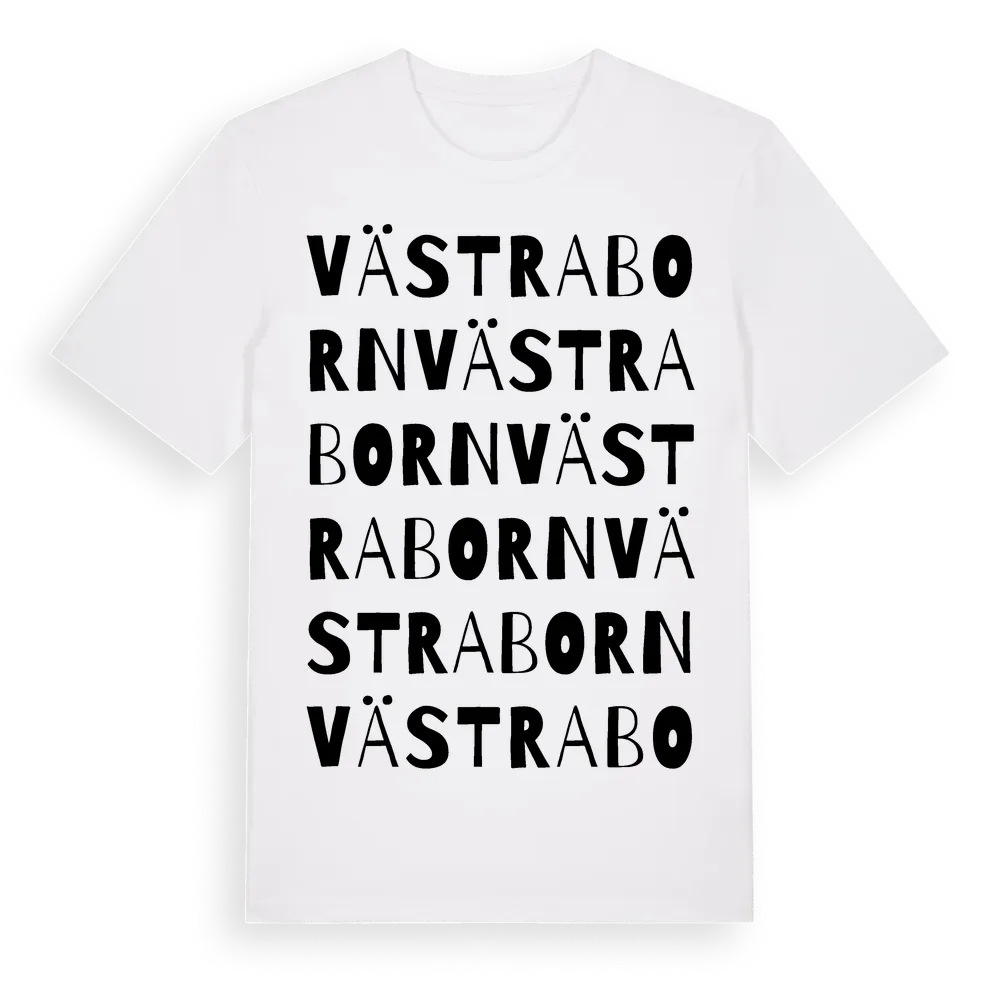 Västra Born ordlek t-shirt är inspirerad av byn Västra Born i Dalarnas län, Sverige. Tröjan är designad för dig som har en speciell koppling till platsen – oavsett om du bor här, har rötterna här eller bara älskar Västra Born.