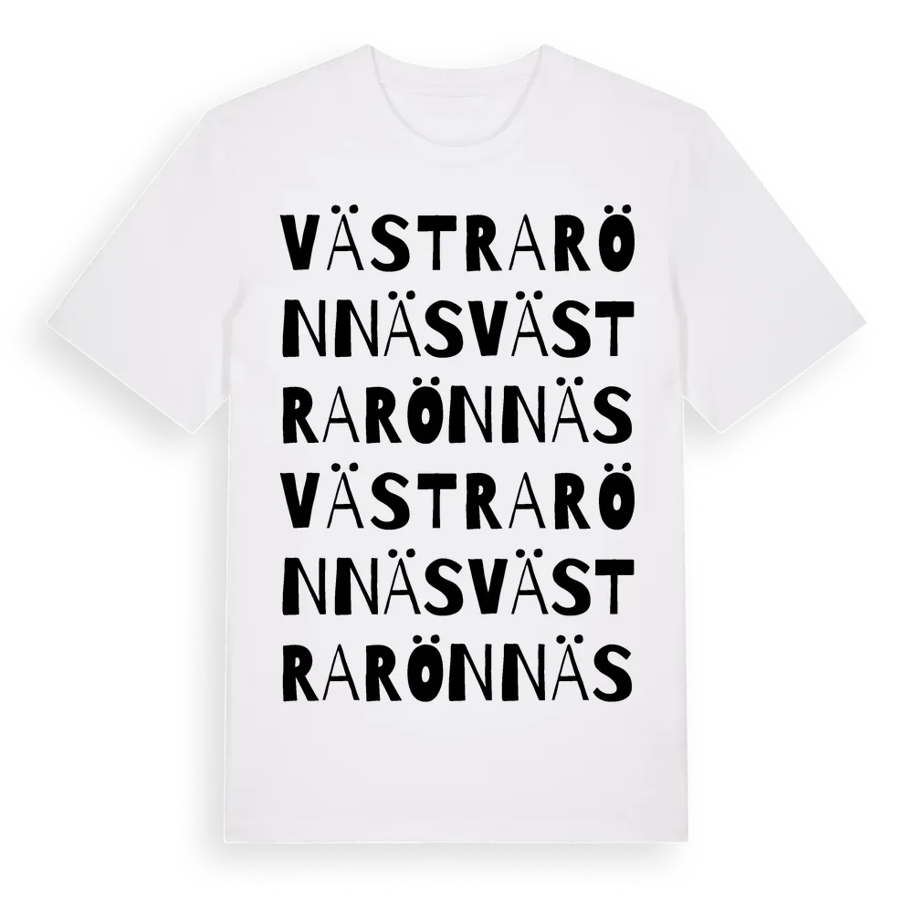 Västra Rönnäs ordlek t-shirt är inspirerad av byn Västra Rönnäs i Dalarnas län, Sverige. Tröjan är designad för dig som har en speciell koppling till platsen – oavsett om du bor här, har rötterna här eller bara älskar Västra Rönnäs.