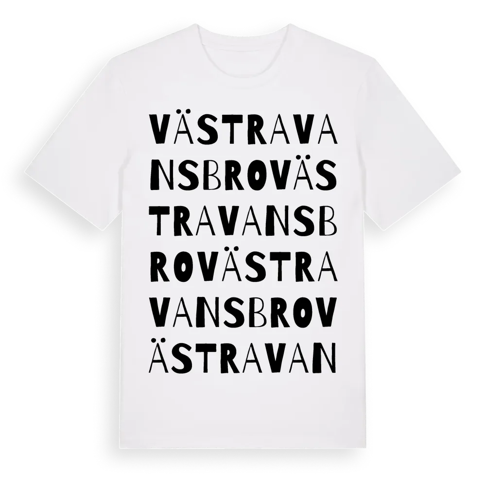 Västra Vansbro ordlek t-shirt är inspirerad av stadsdelen Västra Vansbro i Dalarnas län, Sverige. Tröjan är designad för dig som har en speciell koppling till platsen – oavsett om du bor här, har rötterna här eller bara älskar Västra Vansbro.