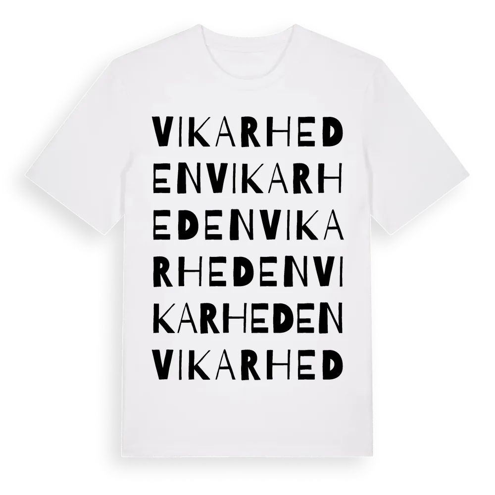 Vikarheden ordlek t-shirt är inspirerad av byn Vikarheden i Dalarnas län, Sverige. Tröjan är designad för dig som har en speciell koppling till platsen – oavsett om du bor här, har rötterna här eller bara älskar Vikarheden.