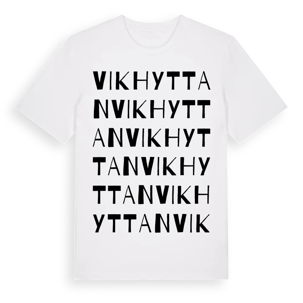 Vikhyttan ordlek t-shirt är inspirerad av byn Vikhyttan i Dalarnas län, Sverige. Tröjan är designad för dig som har en speciell koppling till platsen – oavsett om du bor här, har rötterna här eller bara älskar Vikhyttan.