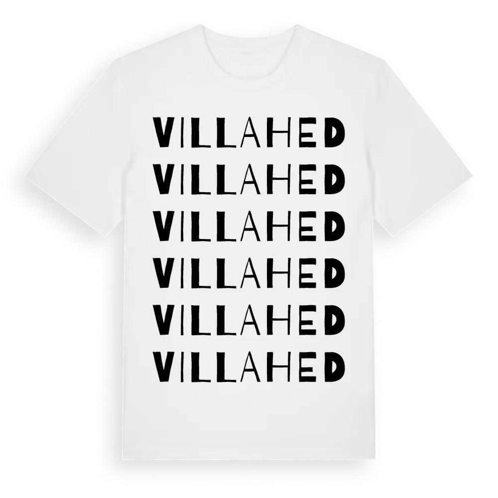 Villahed ordlek t-shirt är inspirerad av stadsdelen Villahed i Dalarnas län, Sverige. Tröjan är designad för dig som har en speciell koppling till platsen – oavsett om du bor här, har rötterna här eller bara älskar Villahed.