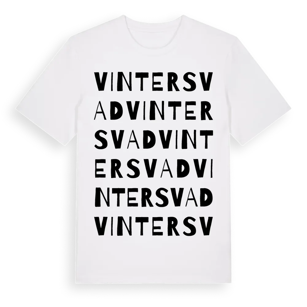 Vintersvad ordlek t-shirt är inspirerad av byn Vintersvad i Dalarnas län, Sverige. Tröjan är designad för dig som har en speciell koppling till platsen – oavsett om du bor här, har rötterna här eller bara älskar Vintersvad.