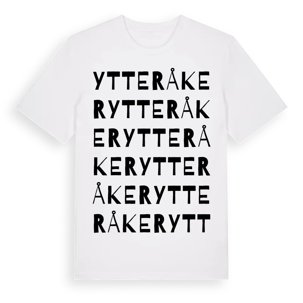 En ordlek byggd på Ytteråkers namn. Subtilt och klurig – ett motiv som bara de som verkligen känner platsen fullt ut förstår. Premium bomull, unisex – från byn Ytteråker i Dalarnas län.