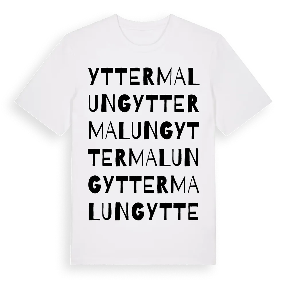 En ordlek byggd på Yttermalungs namn. Subtilt och klurig – ett motiv som bara de som verkligen känner platsen fullt ut förstår. Premium bomull, unisex – från byn Yttermalung i Dalarnas län.