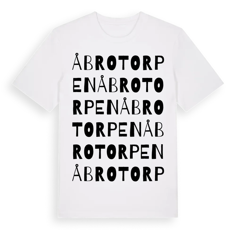 Åbrotorpen ordlek t-shirt är inspirerad av byn Åbrotorpen i Gävleborgs län, Sverige. Tröjan är designad för dig som har en speciell koppling till platsen – oavsett om du bor här, har rötterna här eller bara älskar Åbrotorpen.