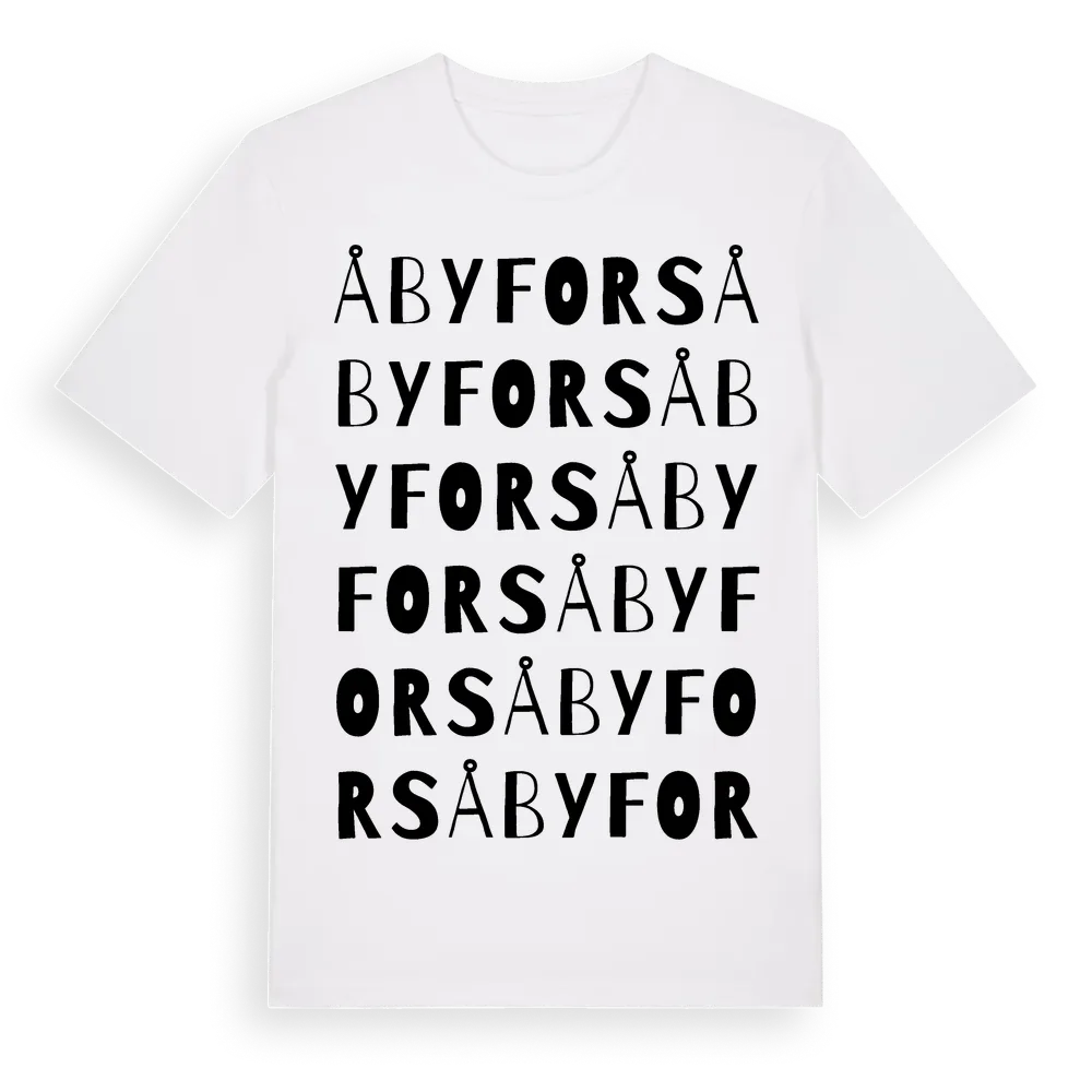 Åbyfors ordlek t-shirt är inspirerad av stadsdelen Åbyfors i Gävleborgs län, Sverige. Tröjan är designad för dig som har en speciell koppling till platsen – oavsett om du bor här, har rötterna här eller bara älskar Åbyfors.