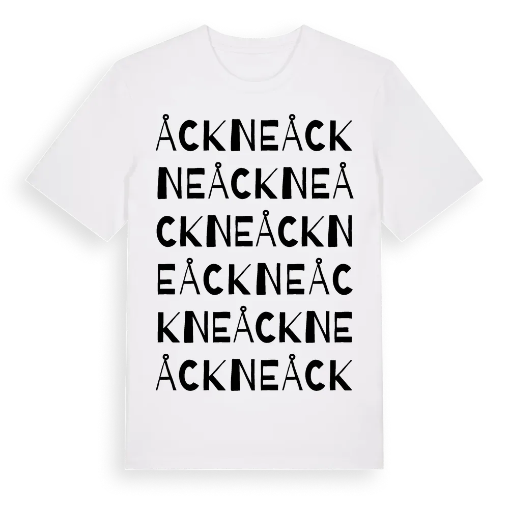 Åckne ordlek t-shirt är inspirerad av byn Åckne i Gävleborgs län, Sverige. Tröjan är designad för dig som har en speciell koppling till platsen – oavsett om du bor här, har rötterna här eller bara älskar Åckne.