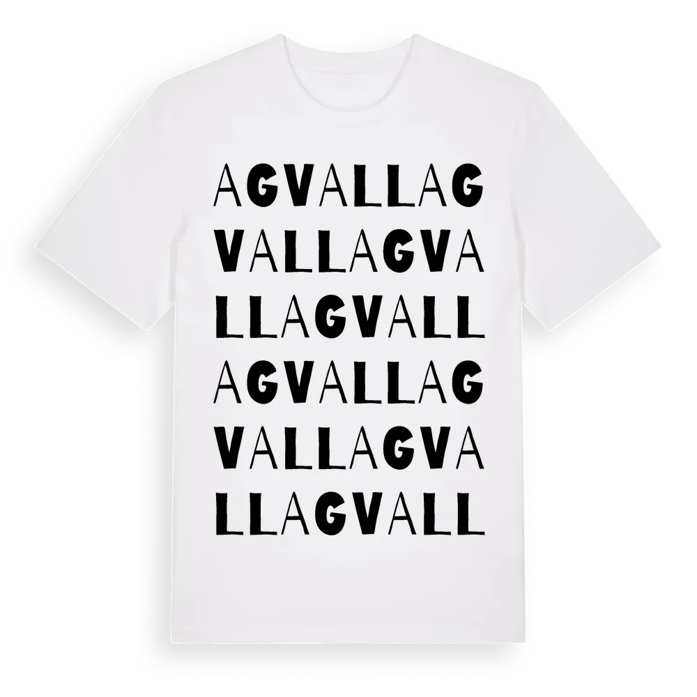 Agvall ordlek t-shirt är inspirerad av Agvall i Gävleborgs län, Sverige. Tröjan är designad för dig som har en speciell koppling till platsen – oavsett om du bor här, har rötterna här eller bara älskar Agvall.