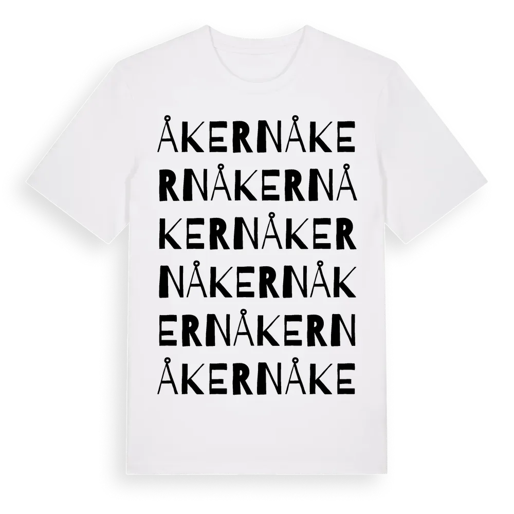 Åkern ordlek t-shirt är inspirerad av byn Åkern i Gävleborgs län, Sverige. Tröjan är designad för dig som har en speciell koppling till platsen – oavsett om du bor här, har rötterna här eller bara älskar Åkern.