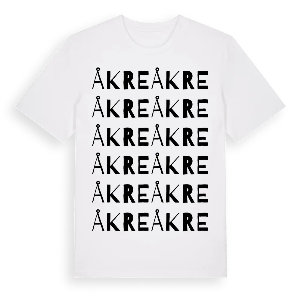 Åkre ordlek t-shirt är inspirerad av byn Åkre i Gävleborgs län, Sverige. Tröjan är designad för dig som har en speciell koppling till platsen – oavsett om du bor här, har rötterna här eller bara älskar Åkre.