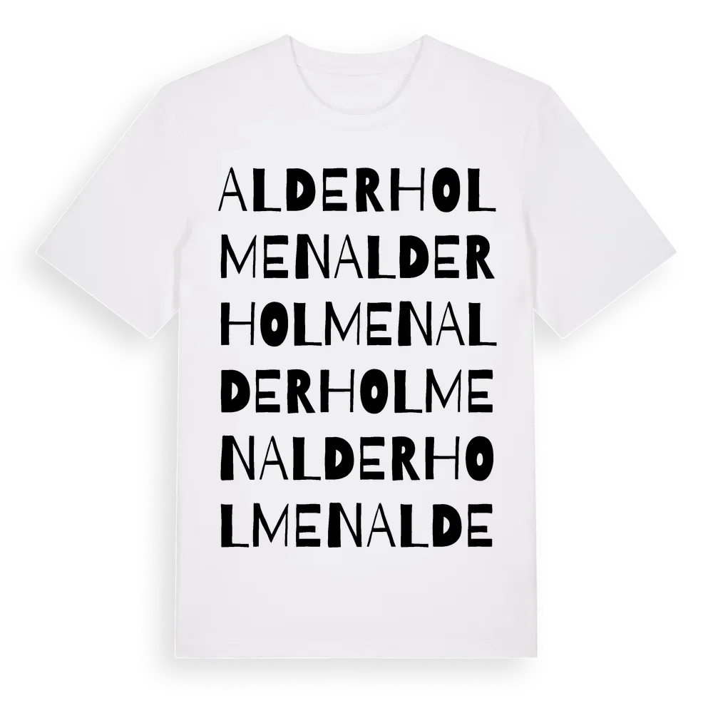 Alderholmen ordlek t-shirt är inspirerad av Alderholmen i Gävleborgs län, Sverige. Tröjan är designad för dig som har en speciell koppling till platsen – oavsett om du bor här, har rötterna här eller bara älskar Alderholmen.