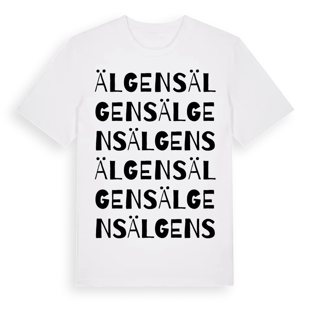 Älgens ordlek t-shirt är inspirerad av Älgens i Gävleborgs län, Sverige. Tröjan är designad för dig som har en speciell koppling till platsen – oavsett om du bor här, har rötterna här eller bara älskar Älgens.