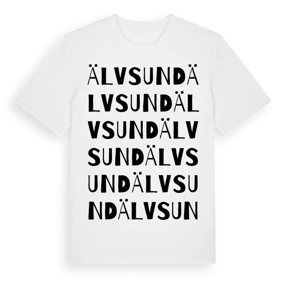 Älvsund ordlek t-shirt är inspirerad av byn Älvsund i Gävleborgs län, Sverige. Tröjan är designad för dig som har en speciell koppling till platsen – oavsett om du bor här, har rötterna här eller bara älskar Älvsund.