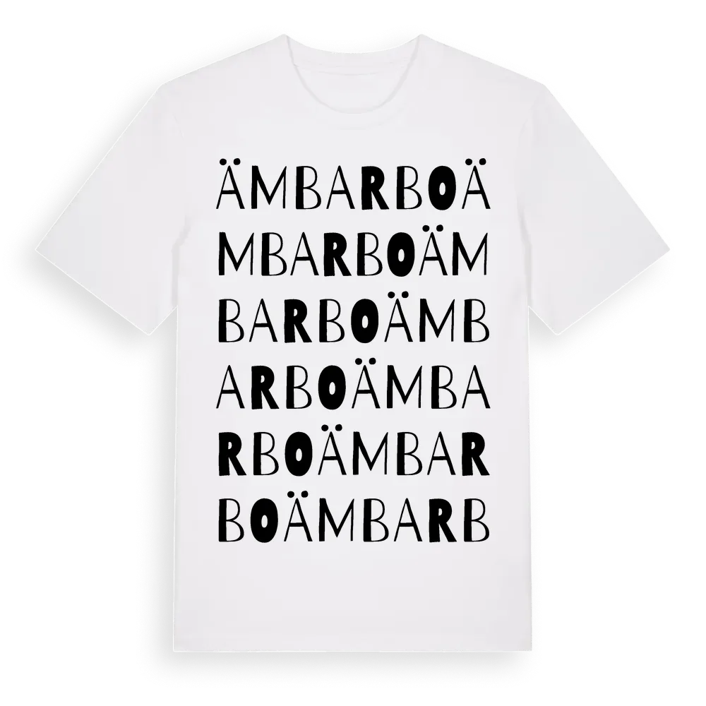 Ämbarbo ordlek t-shirt är inspirerad av Ämbarbo i Gävleborgs län, Sverige. Tröjan är designad för dig som har en speciell koppling till platsen – oavsett om du bor här, har rötterna här eller bara älskar Ämbarbo.