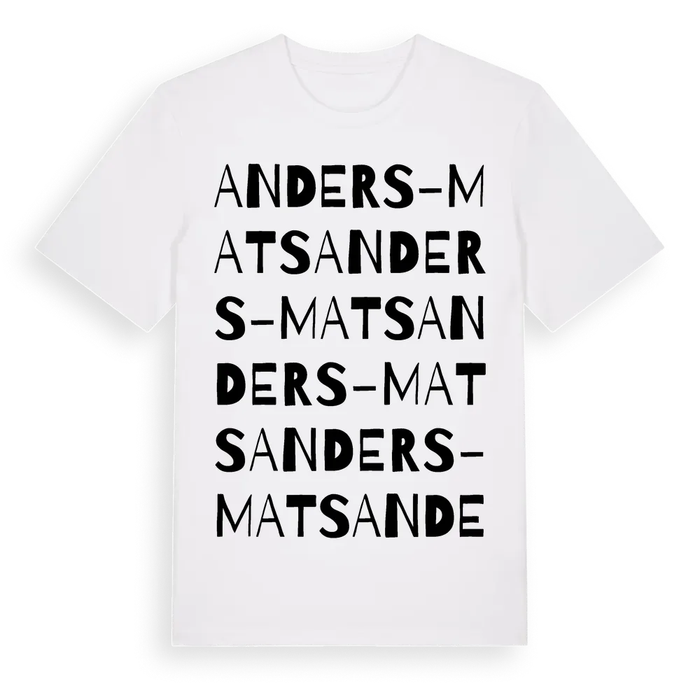 Anders-Mats ordlek t-shirt är inspirerad av Anders-Mats i Gävleborgs län, Sverige. Tröjan är designad för dig som har en speciell koppling till platsen – oavsett om du bor här, har rötterna här eller bara älskar Anders-Mats.