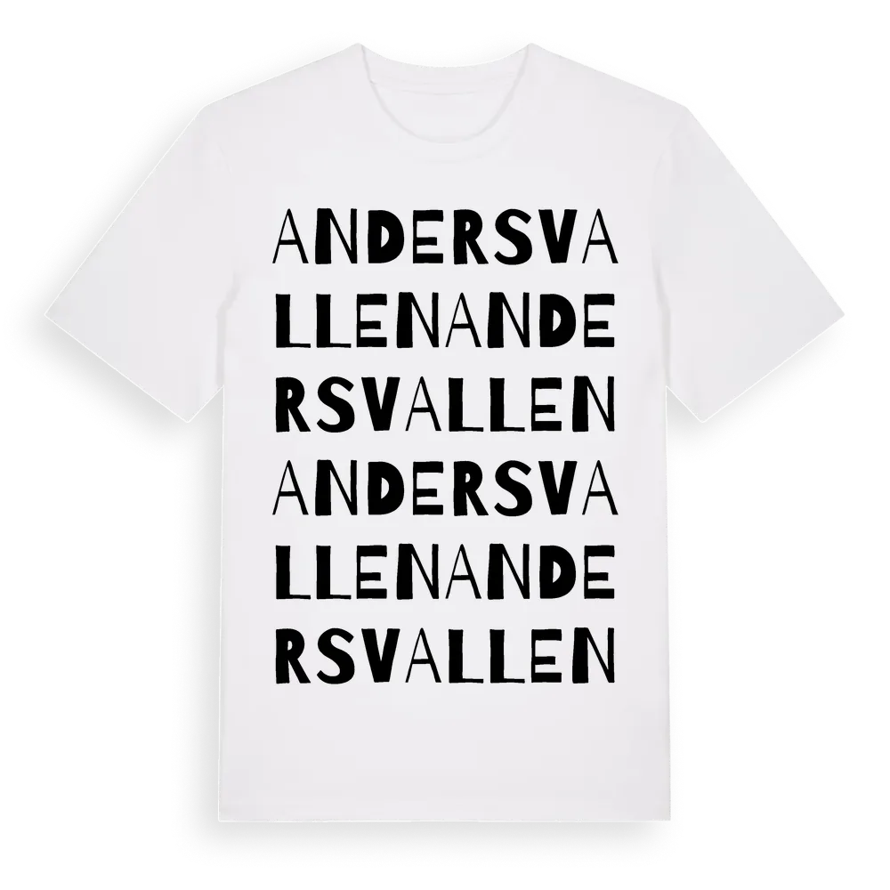 Andersvallen ordlek t-shirt är inspirerad av Andersvallen i Gävleborgs län, Sverige. Tröjan är designad för dig som har en speciell koppling till platsen – oavsett om du bor här, har rötterna här eller bara älskar Andersvallen.