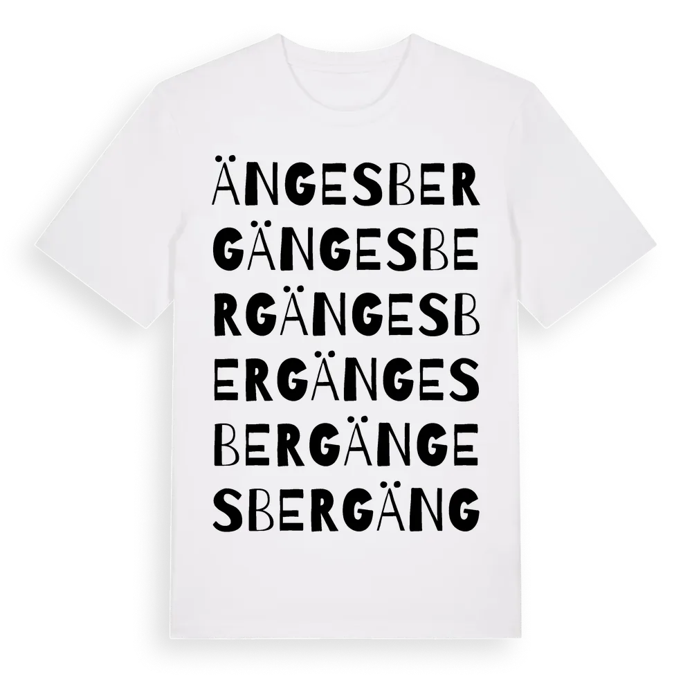 Ängesberg ordlek t-shirt är inspirerad av Ängesberg i Gävleborgs län, Sverige. Tröjan är designad för dig som har en speciell koppling till platsen – oavsett om du bor här, har rötterna här eller bara älskar Ängesberg.