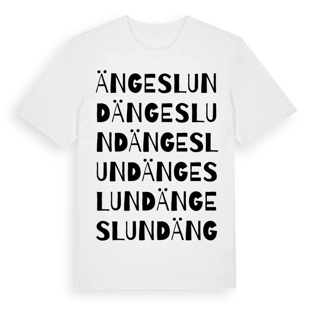 Ängeslund ordlek t-shirt är inspirerad av Ängeslund i Gävleborgs län, Sverige. Tröjan är designad för dig som har en speciell koppling till platsen – oavsett om du bor här, har rötterna här eller bara älskar Ängeslund.