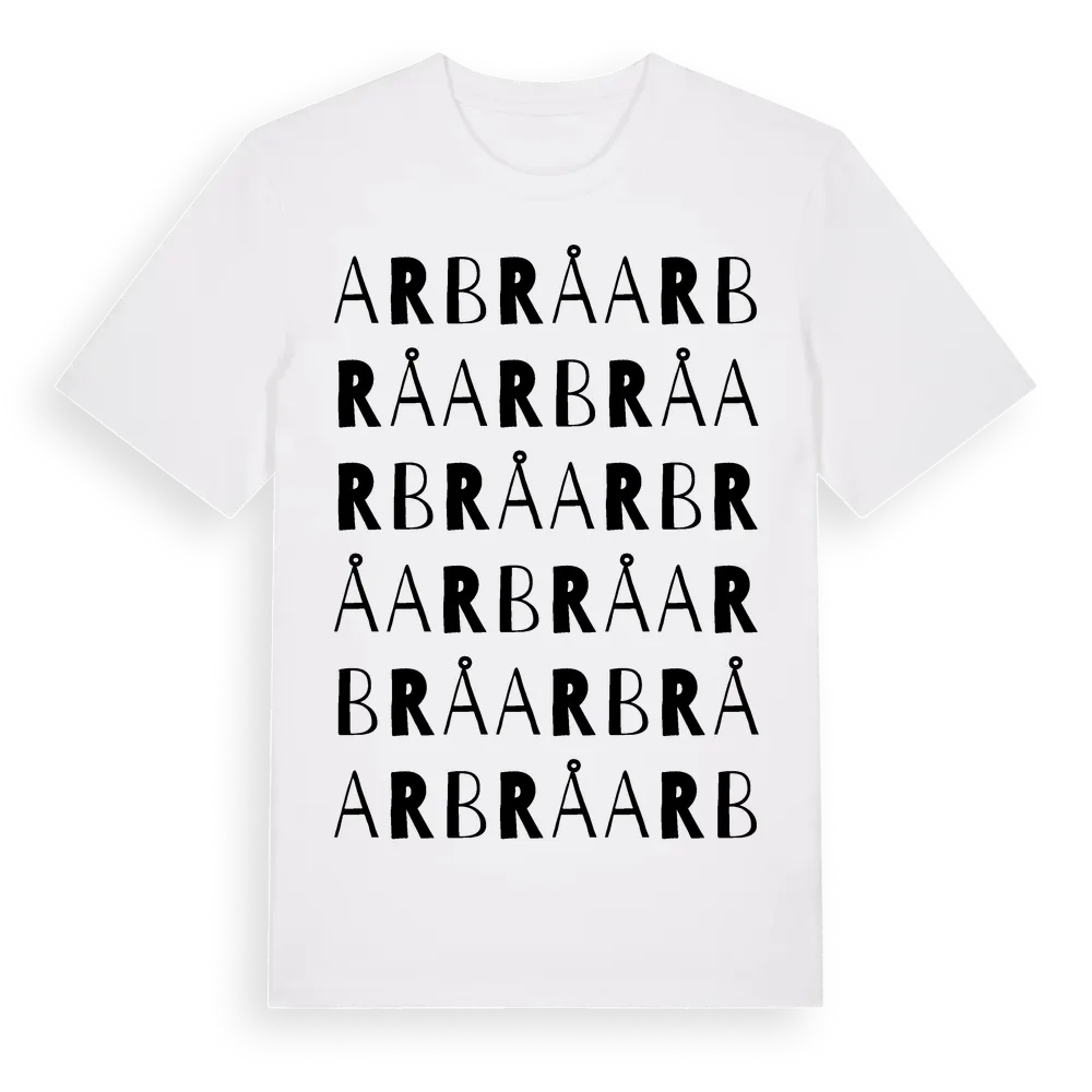 Arbrå ordlek t-shirt är inspirerad av byn Arbrå i Gävleborgs län, Sverige. Tröjan är designad för dig som har en speciell koppling till platsen – oavsett om du bor här, har rötterna här eller bara älskar Arbrå.